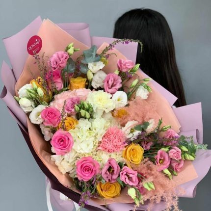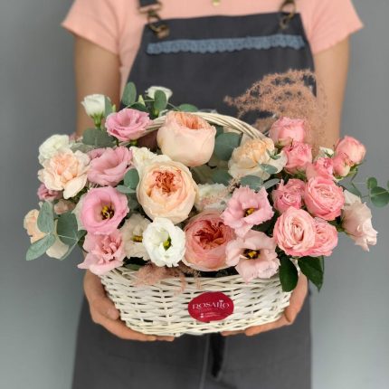 Интерьерная средняя композиция из натуральных сухоцветов и декоративных цветов