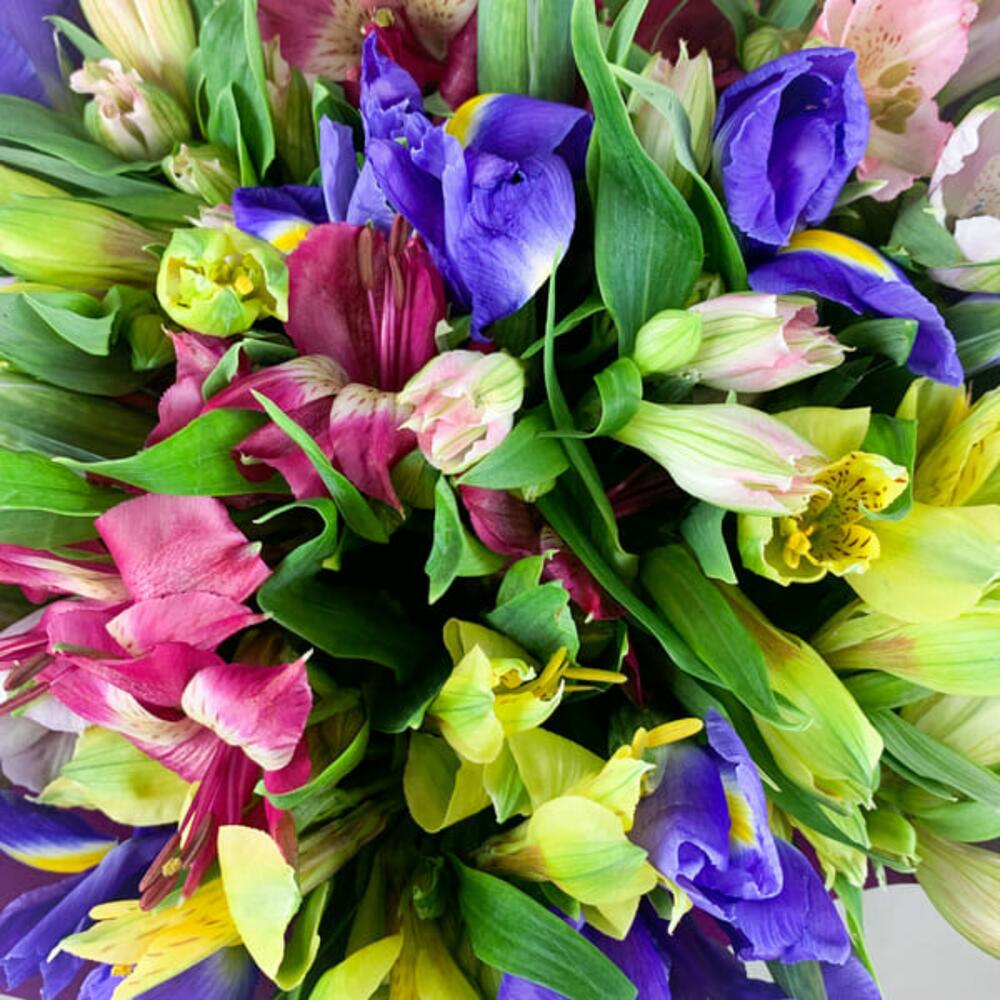 альстромерия микс – 10 шт.Ирис – 15 шт.Упаковка – 1 шт.