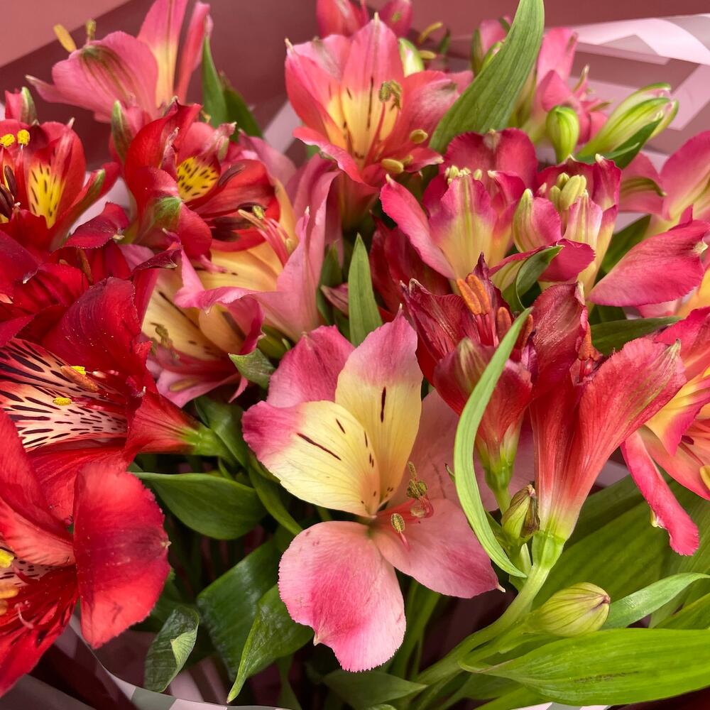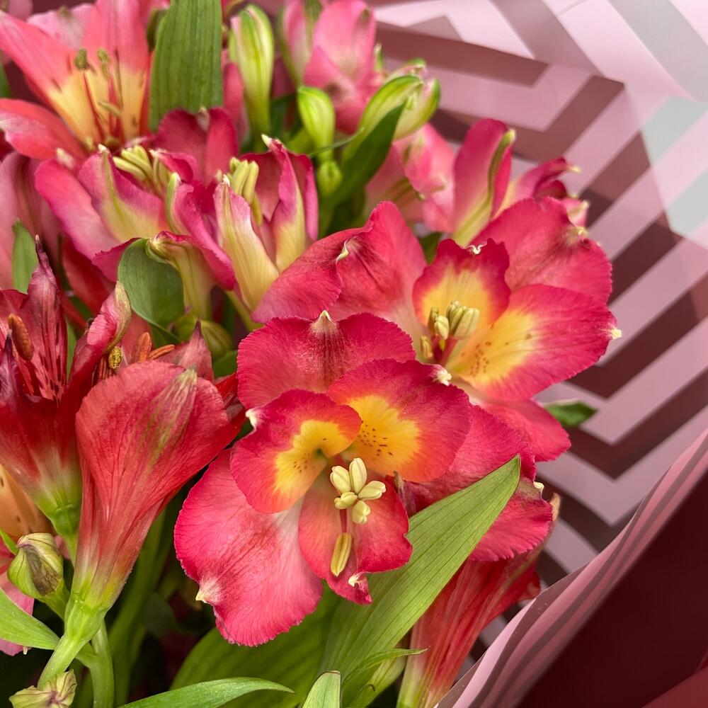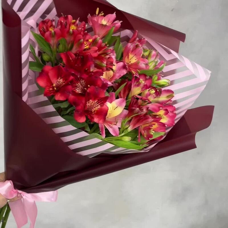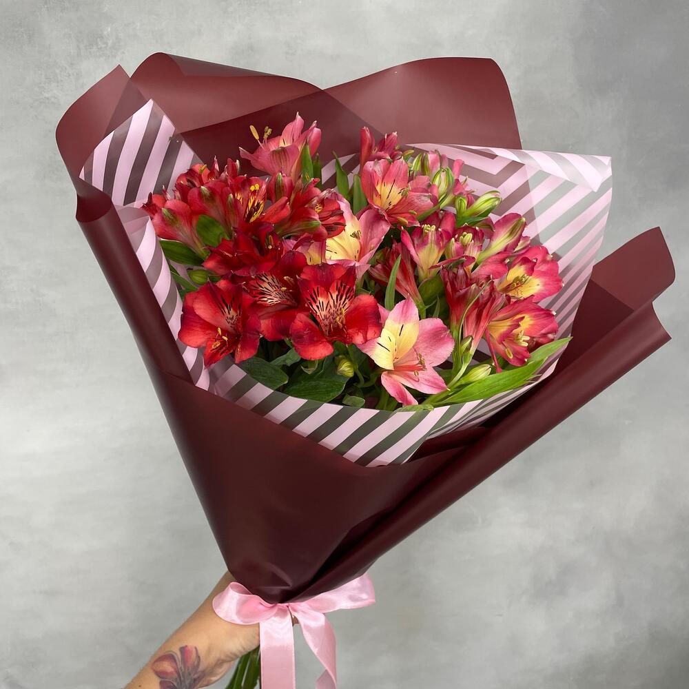 Альстромерия – 7 шт.Лента атласная – 1 шт.Упаковка дизайнерская – 1 шт.