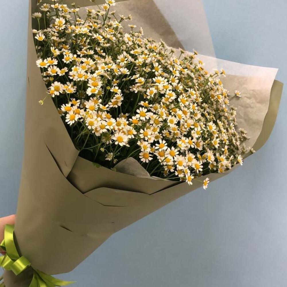 Матрикария – 23 шт.крафтовая бумага – 2 шт.тишью белая – 1 шт.Атласная лента – 1 шт.