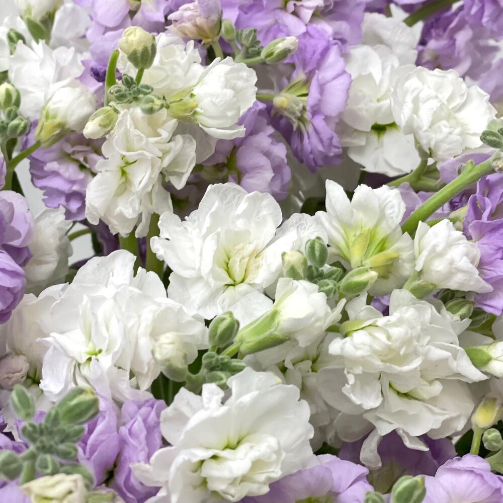 «Лавандовое созвездие» Букет из розы, гвоздики, статица и хлопка