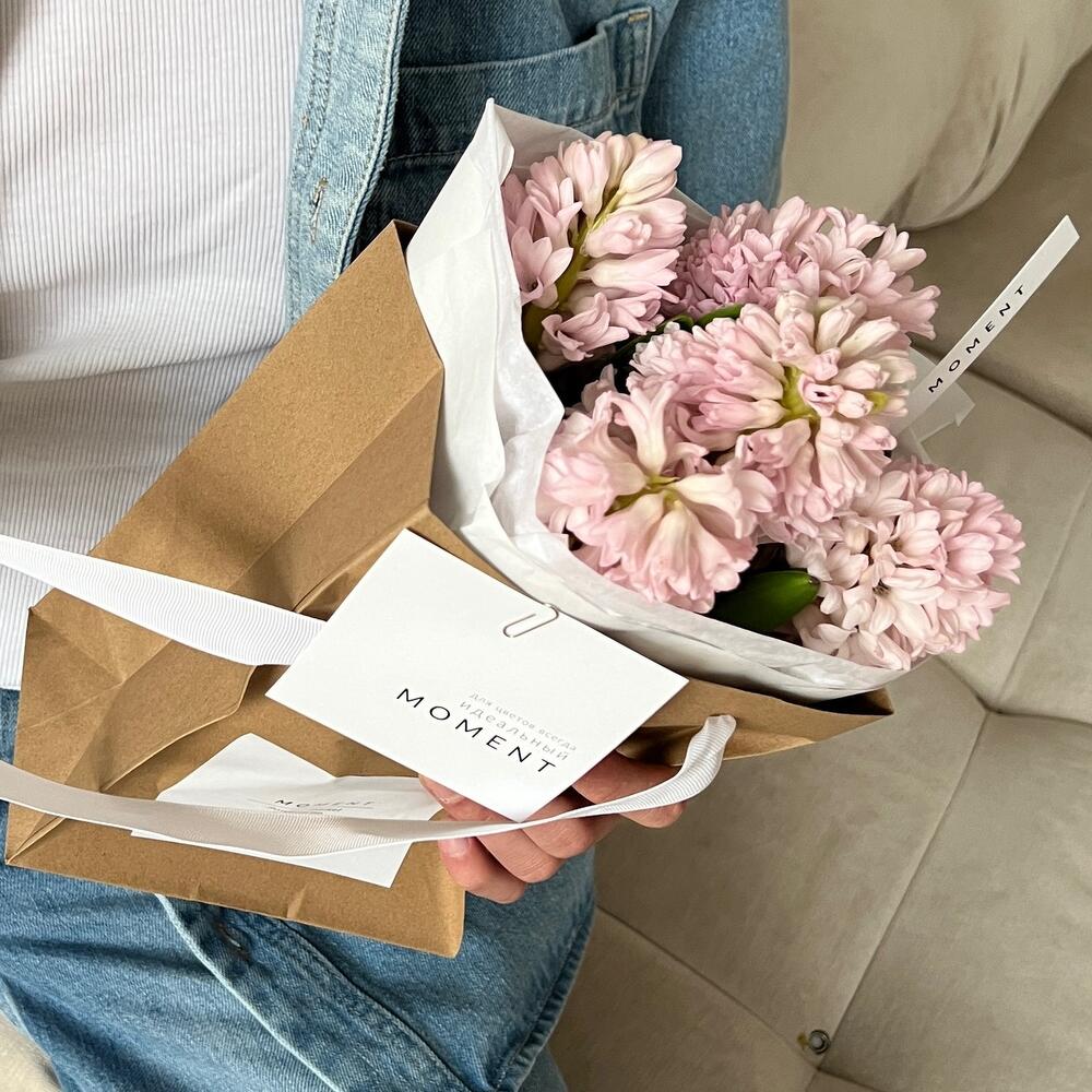 Тишью – 2 шт.Крафт – 2 шт.Карточка для подписи – 1 шт.крафтовый пакет – 1 шт.гиацинты – 5 шт.