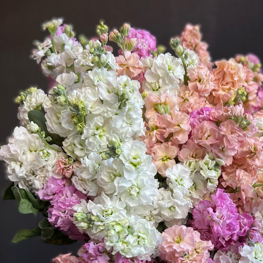 Ароматный букет с матиоллой, гортензией и лизиантусом