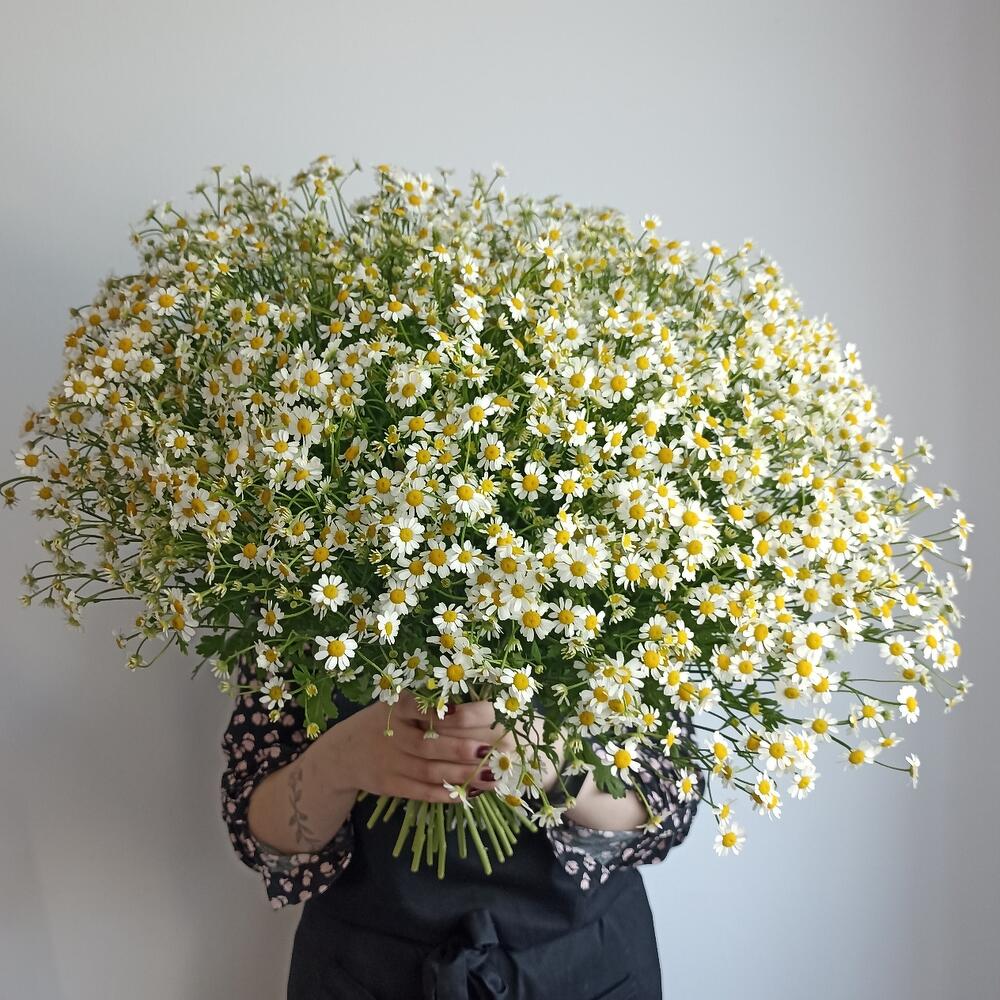 Матрикария – 49 шт.Лента атласная – 1 шт.
