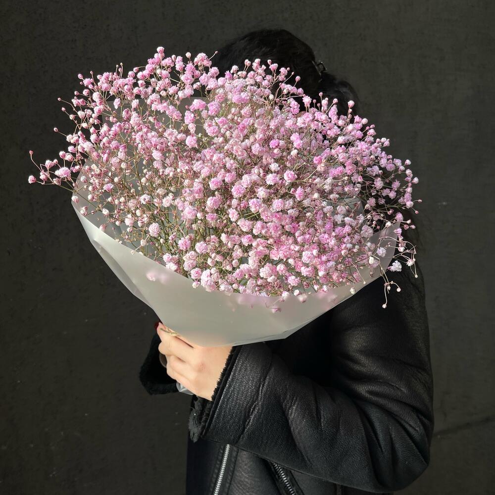 Букет 16: розовая гипсофила в упаковке