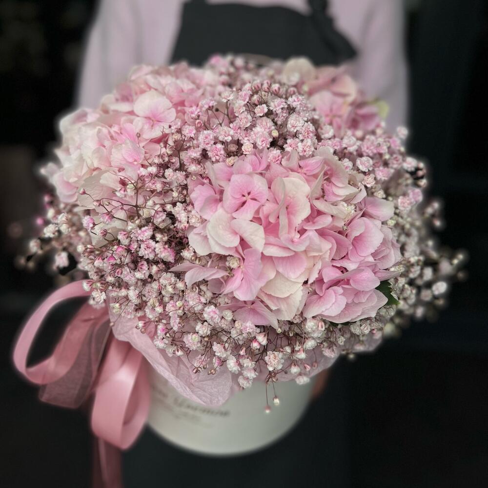 Гортензия в шляпной коробке смотрится очень воздушно, мило и стильно. Так как гортензия объемная, это прекрасный бюджетный и в то же время небанальный вариант.Доставим быстро и бережно.* К сожалению, мы не можем гарантировать 100% копию букета. Ежедневно к нам в салон … Показать ещёприезжают свежие цветы и они могут отличаться друг от друга. Со своей стороны, мы гарантируем соблюсти состав и общий стиль вашего букета. При возникновении вопроса о замене дизайнерской упаковки – мы обязательно свяжемся с вами. Букет из живых цветов мы начинаем собирать после оформления заказа.