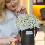 Гипсофила – 8 шт.Коробка шляпная – 1 шт.Оазис – 1 шт.