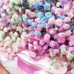 “Сиреневый туман” – композиция из гипсофилы в шляпной коробке