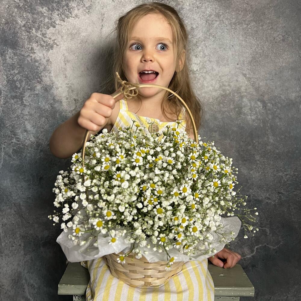 Корзина с цветами ромашка гипсофила