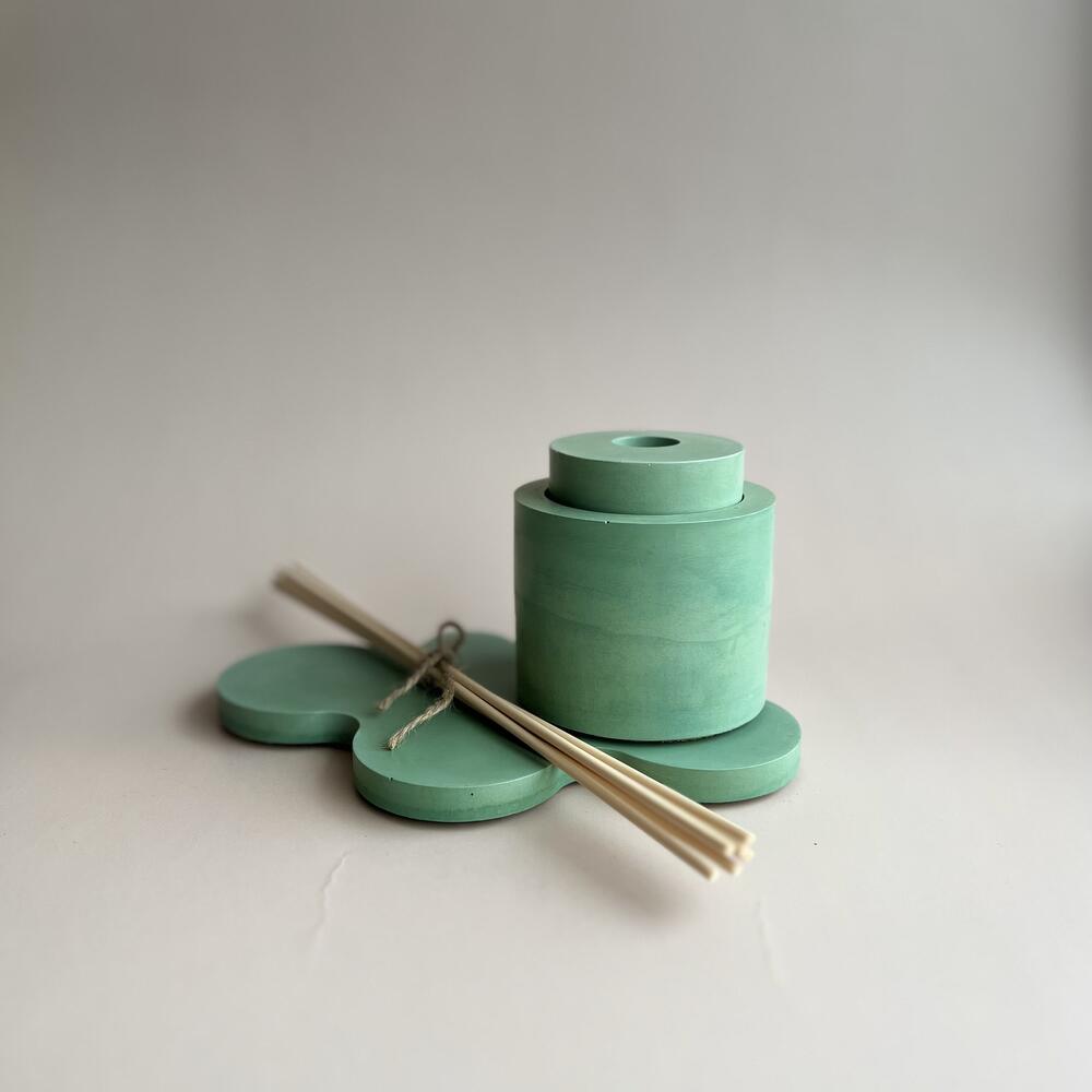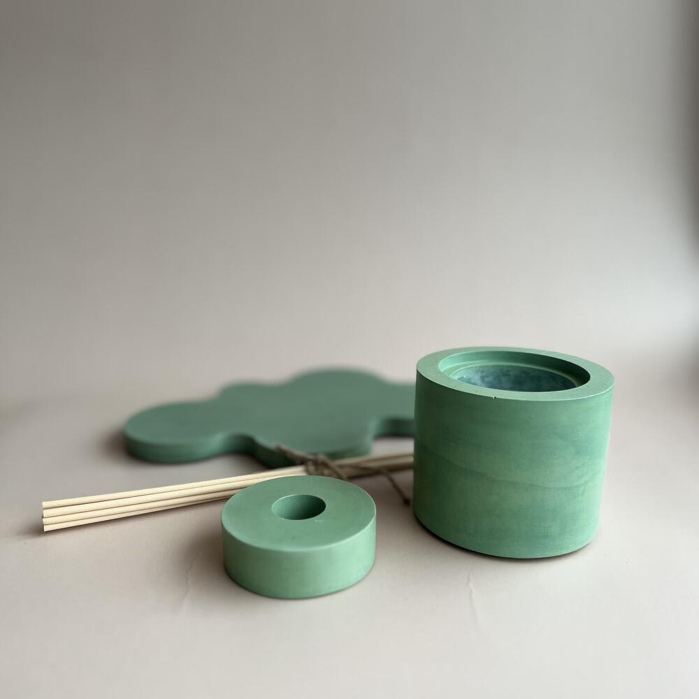 Полностью ручная работа.Диффузор и подставка выполнены из высокопрочного акрилового гипса, приятные на ощупь и прочные как бетон. Жидкость для заполнения диффузора представлена в семи премиальных ароматах для дома, наполняющих пространство неповторимым ароматом.Такой набор отлично подойдет для подарка. Представлены в эксклюзивном изумрудном цвете.Просим указать при заказе номер выбранного аромата:1.BLACKBERRY BAY – яркий и свежий, бутоны черной смородины и листья ежевики делают аромат таким насыщенным и свежим с ярким акцентом лаврового листа, а древесные оттенки кедра придают базовым нотам приятную глубину. Ноты аромата: ежевика, лавр, грейпфрут, кедр и ветивер.2.WOOD SAGE & SEA SALT – аромат является запахом радости и свободы, для тех, кто хочет в черте города ощутить всю прелесть морского побережья. Аромат построен вокруг аккордов семян амбретты, морской соли и шалфея, дополненных оттенками красных водорослей и грейпфрута. Ноты аромата: семена амбретта, морская соль, шалфей, красные морские водоросли3.PEONY & BLUSH SUEDE – легкий цветочный аромат, композиция открывается аппетитным, сочным и свежим аккордом красного яблока. Мягкие лепестки пиона, переплетаясь с элегантными нотами жасмина, розы и гвоздики, образуют сердце аромата. База подчеркивает утонченность цветов узнаваемыми оттенками замши. Ноты аромата: красное яблоко, пион, замша.4.MASSIMO DUTTI – аромат передает многослойную суть образа совместной жизнь в мегаполисе, открывается нотами ягод можжевельника, которые постепенно переходят в мягкое сливочное сердце из корня ириса и фиалки, которые, в свою очередь, уступают место базе, созданной из теплой амбры, кожи и экзотических оттенков пачули. Ноты аромата: ягоды можжевельника, ирис, амбра, пачули, кожа.5.PEPPER & NEROLI AMBER – свежий пряно-восточный аромат, но ненавязчивый со сладковатый ароматом дым табака, аромат напоминает вечера в уютном пледе у камина, который согревает пряностью перца, очаровывает благоуханием нероли и околдовывает соблазнительной вуалью амбры. Ноты аромата: амбра, нероли, черный перец.6.SPICY WOODY – аромат состоит из ярких и насыщенных нот древесины и пряностей, сочетает в себе сразу и аромат деревьев, и запах пряностей, благоухает яркими красками восточных специй и ароматных трав. Древесные ноты приглушают яркое звучание пряностей, делают аромат более насыщенным, но не кричащим.7. EMMANUELLE– легкий цветочный древесно-мускусный аромат. Верхние ноты: gион, цитрусы и мандарин; средние ноты: османтус и роза; базовые ноты: сандал, пачули и розовый перец.Надеемся, что вы получите макси