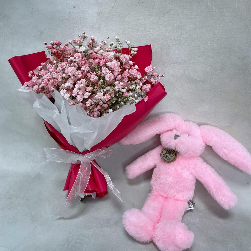 Гипсофила – 3 шт.Упаковка – 1 шт.игрушка зайчонок lapkin – 1 шт.Пакет крафт – 1 шт.
