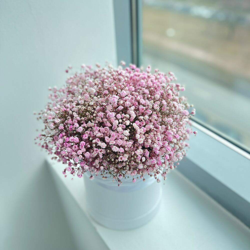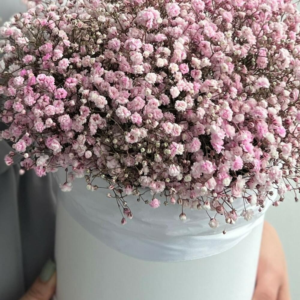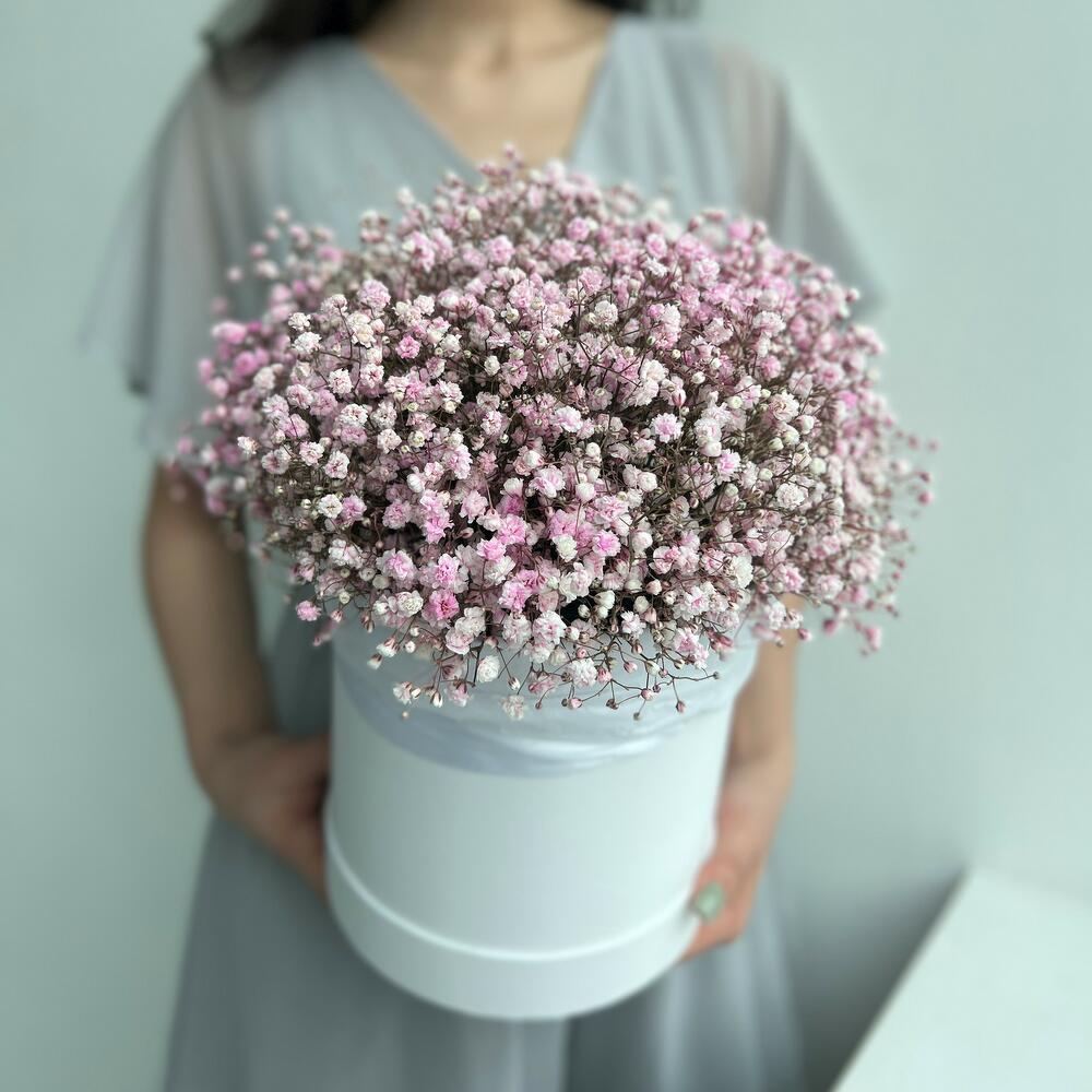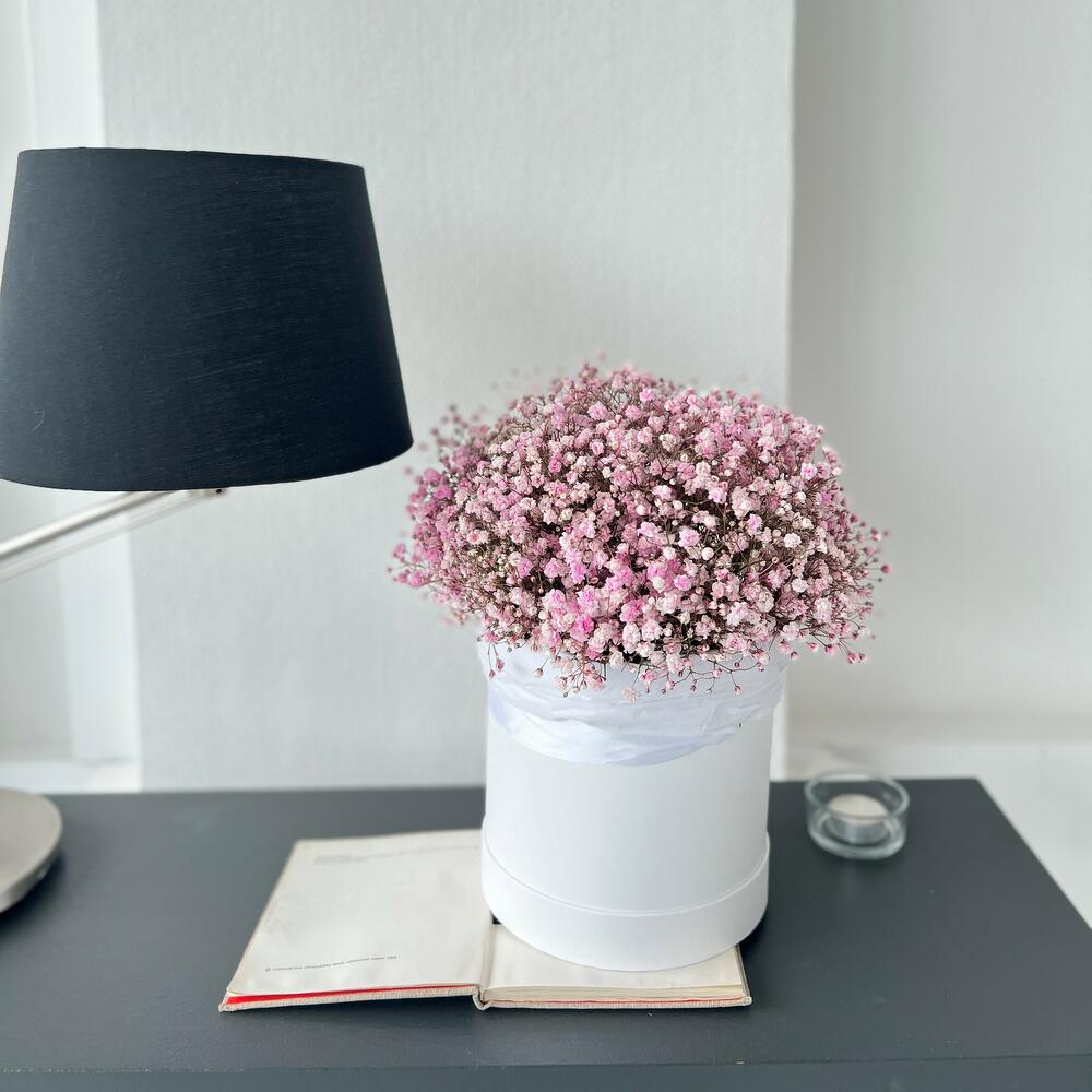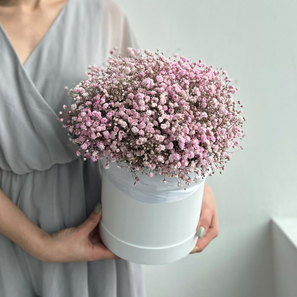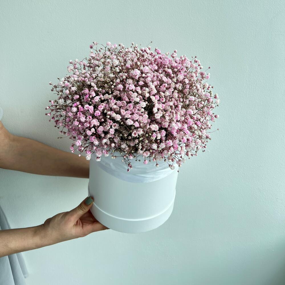 Шляпная коробка из розовых гипсофил
