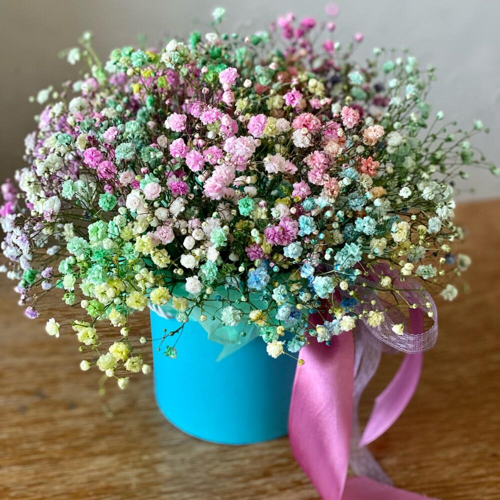 Шляпная коробка крашеной гипсофилы
