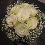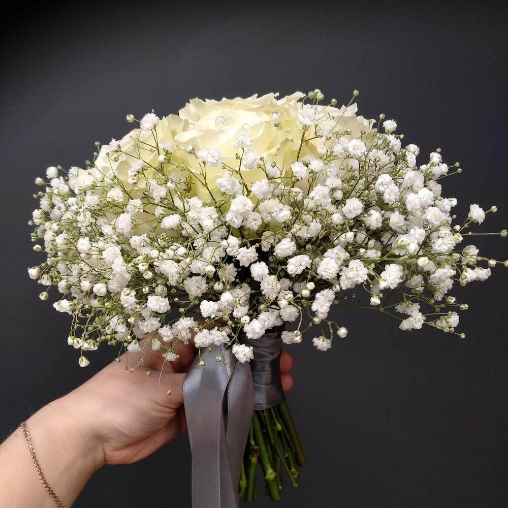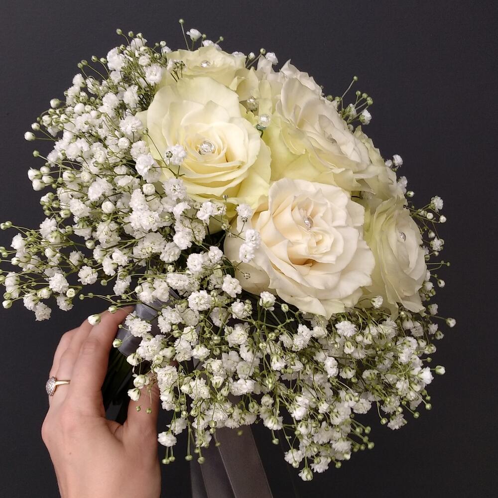 Свадебный букет из белых роз и гипсофилы