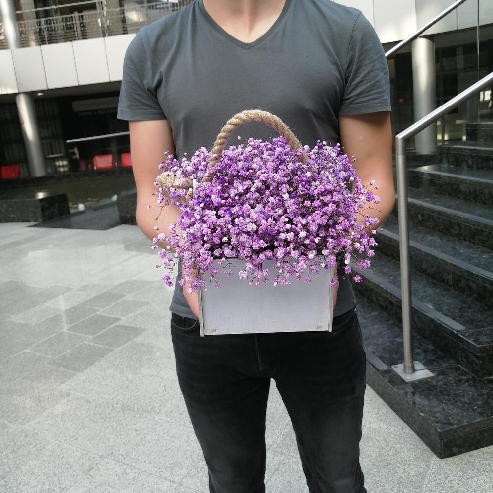 Гипсофила Мирабелла 95 г – 15 шт.Ящик деревянный – 1 шт.Оазис флористический – 1 шт.
