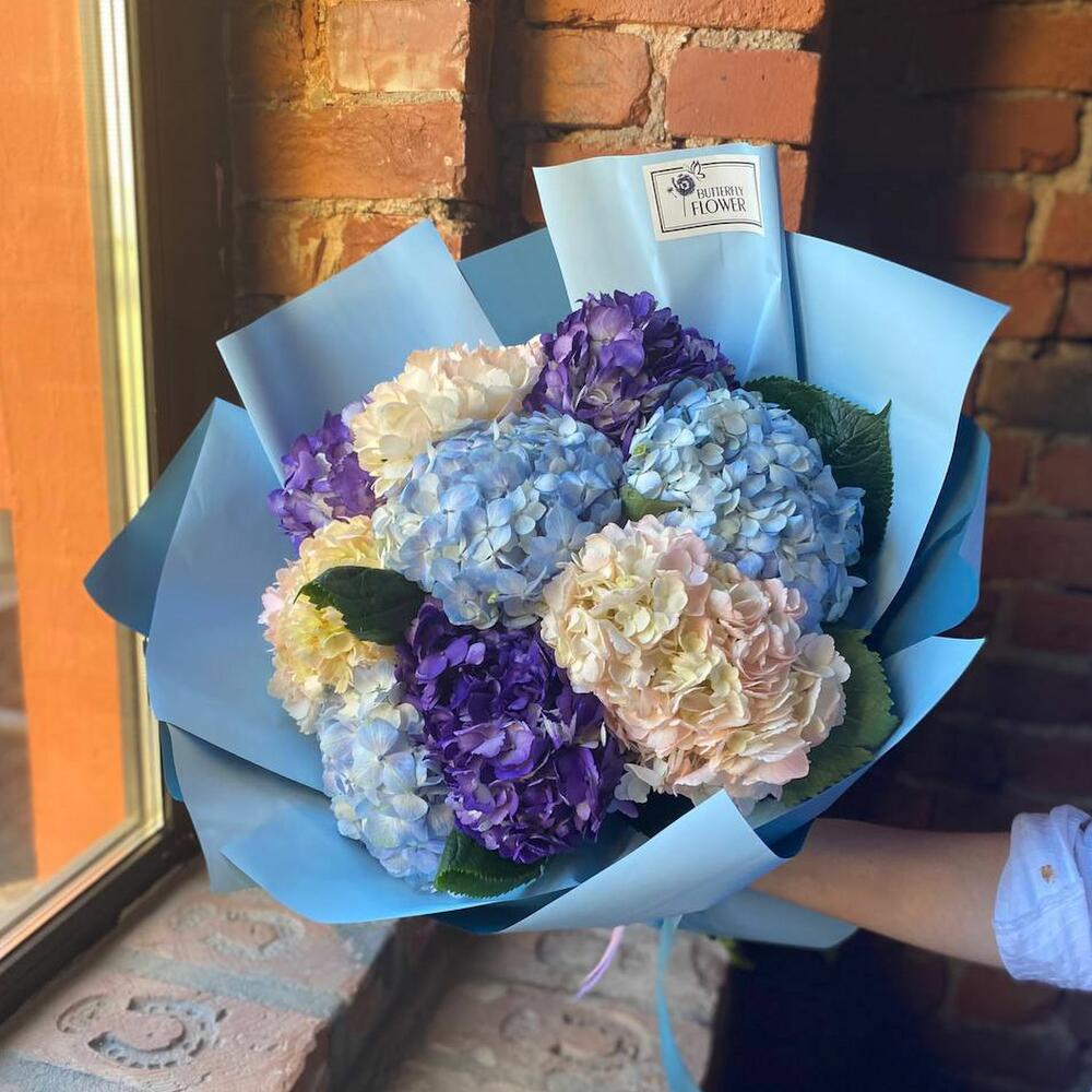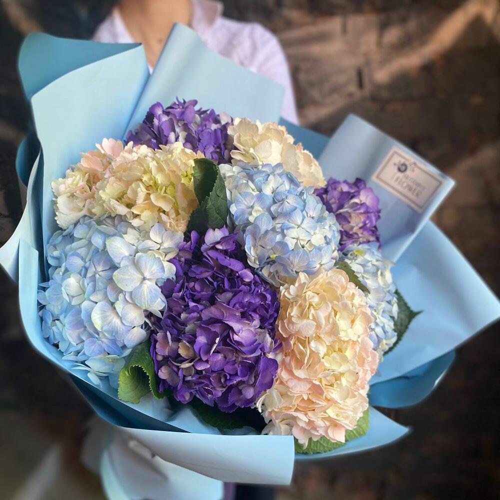 Гортензия – 9 шт.Дизайнерская упаковка – 1 шт.Лента – 1 шт.