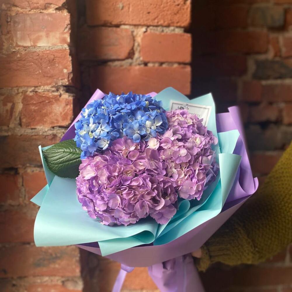 Красивый букет из 3 сиреневых и синих гортензий "Актау"