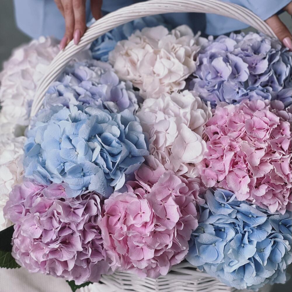 Шикарная корзина с гортензиями