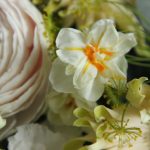 гербера кучерявая – 5 шт.Ранункулюс – 5 шт.Амми – 3 шт.Маттиола – 3 шт.Нарцисс – 2 шт.Лизиантус – 3 шт.Гвоздика – 6 шт.Гринбелл – 2 шт.Эвкалипт – 5 шт.Фисташка – 2 шт.Оазис флористический – 1 шт.Коробка шляпная – 1 шт.