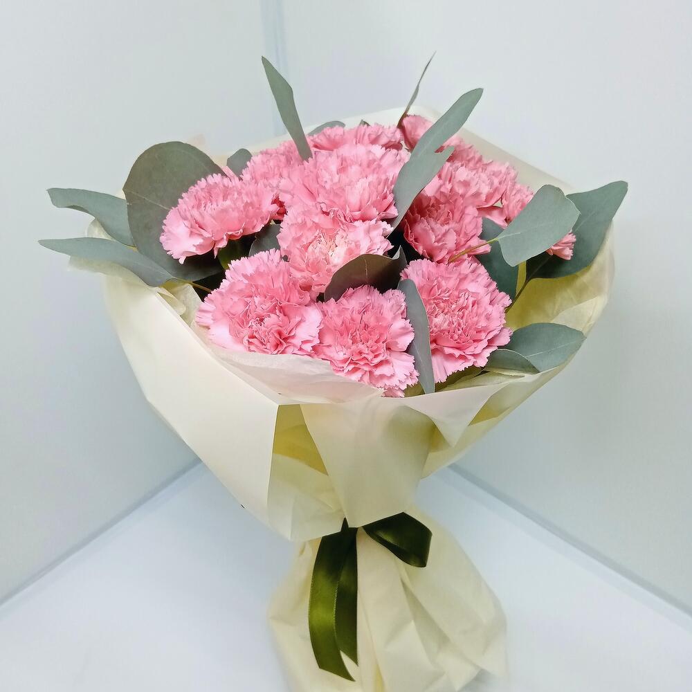 Гвоздика – 15 шт.Эвкалипт – 3 шт.Дизайнерская упаковка – 1 шт.