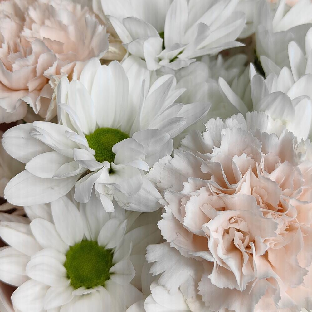 Букет из ромашек и персиковых диантусов "Ваниль"