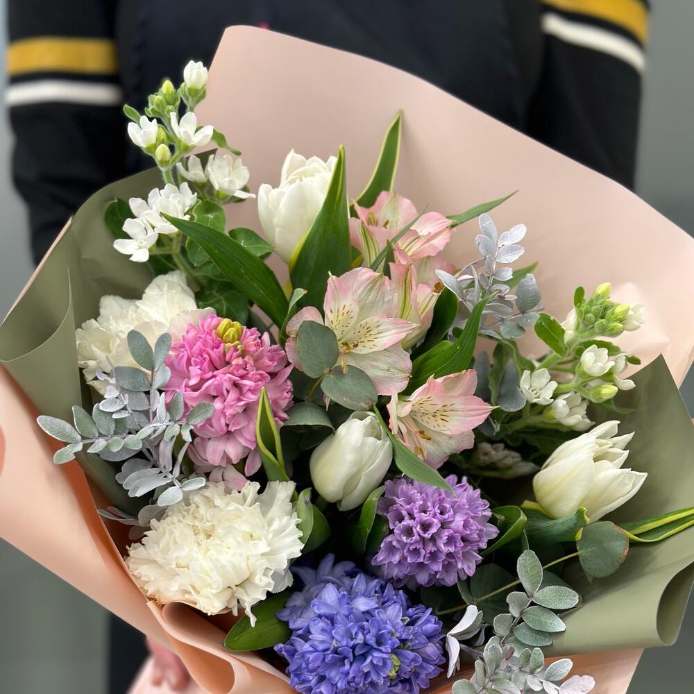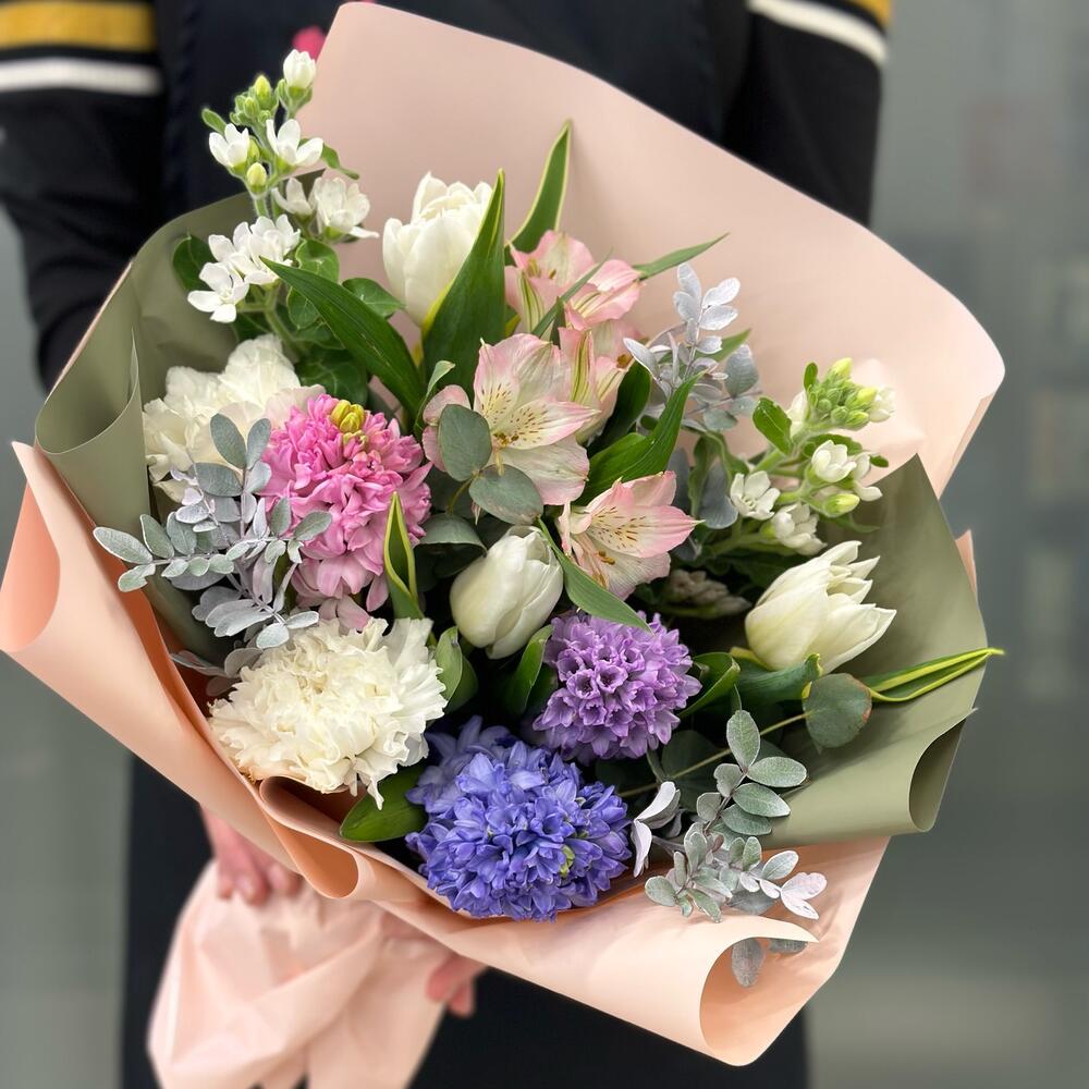 Букет с гиацинтами и тюльпанами