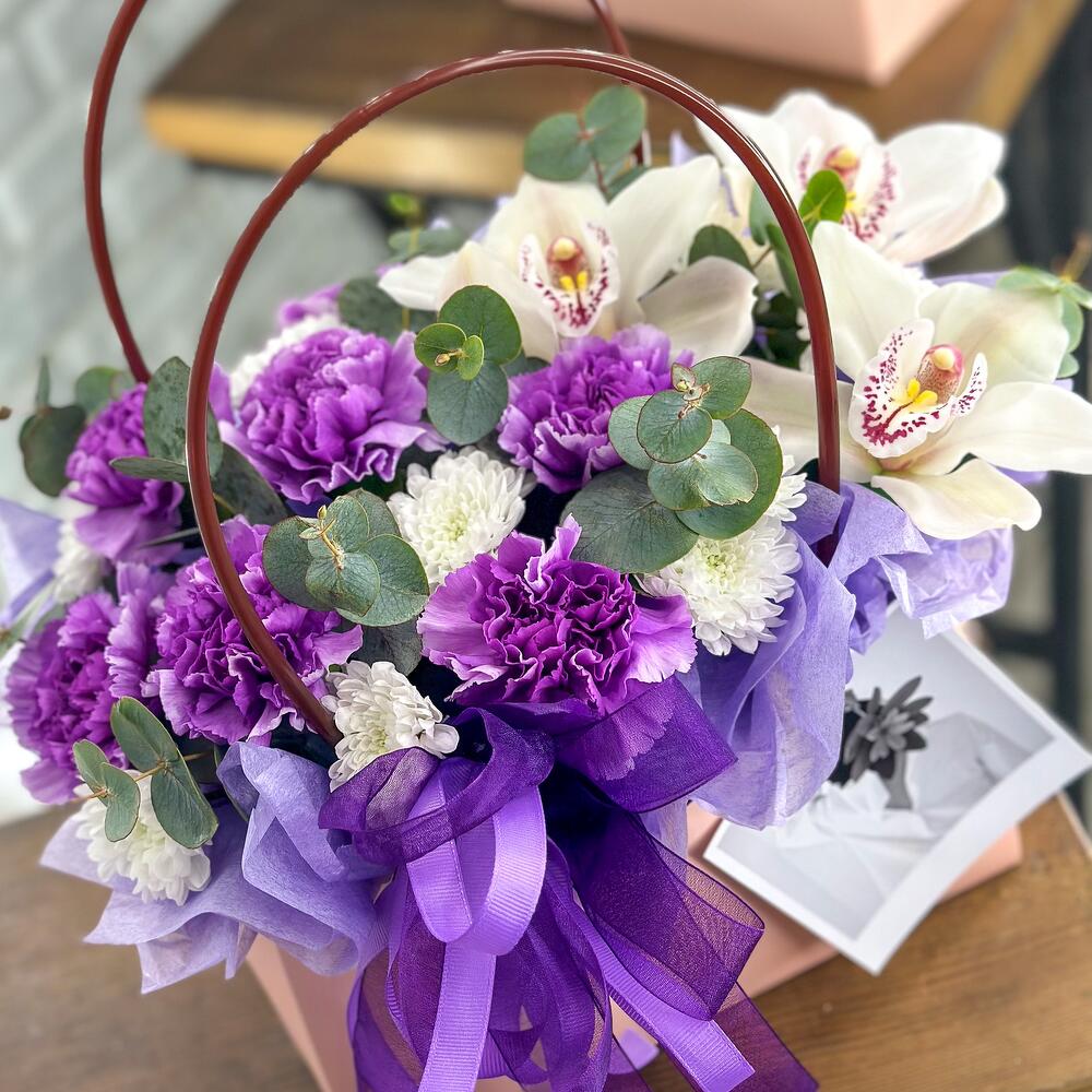 В составе воздушной необычной композиции орхидея Цимбидиум ,диантус сортовой ,ароматный эвкалипт приятно удивит Вас стойкостью,можете в этом не сомневаться)Цветы стоят в специальной флористической губке ,что позволяет им больше оставаться свежими и радовать получателя.Так же композиция в коробке это очень удобно и эффектно!Добавляйте товар и магазин в избранное,чтобы было легче нас найти!С Уважением VaraBoro flowers