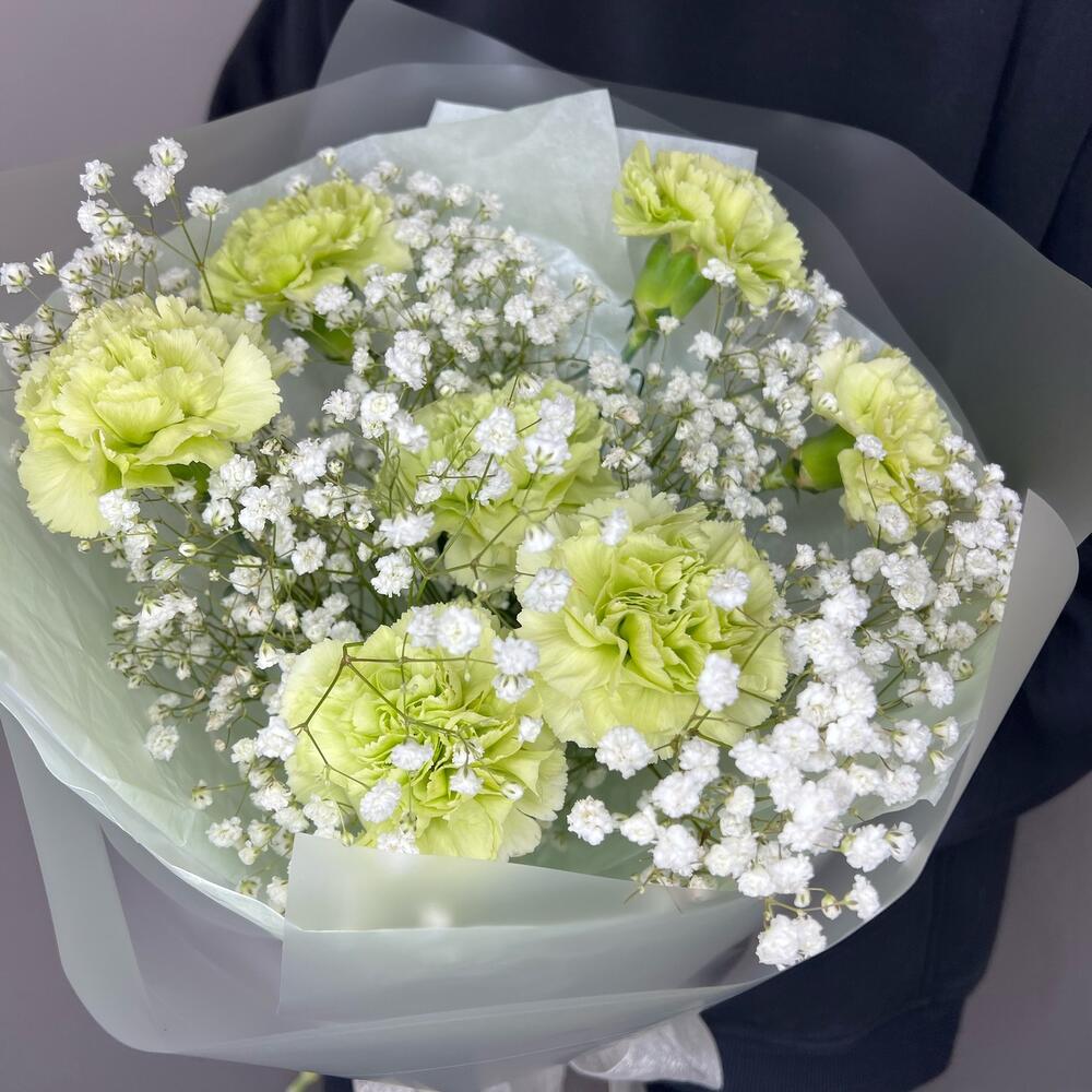 Гипсофила – 2 шт.Упаковка дизайнерская – 1 шт.гвоздика диантус – 7 шт.комплимент от polyanka – 1 шт.