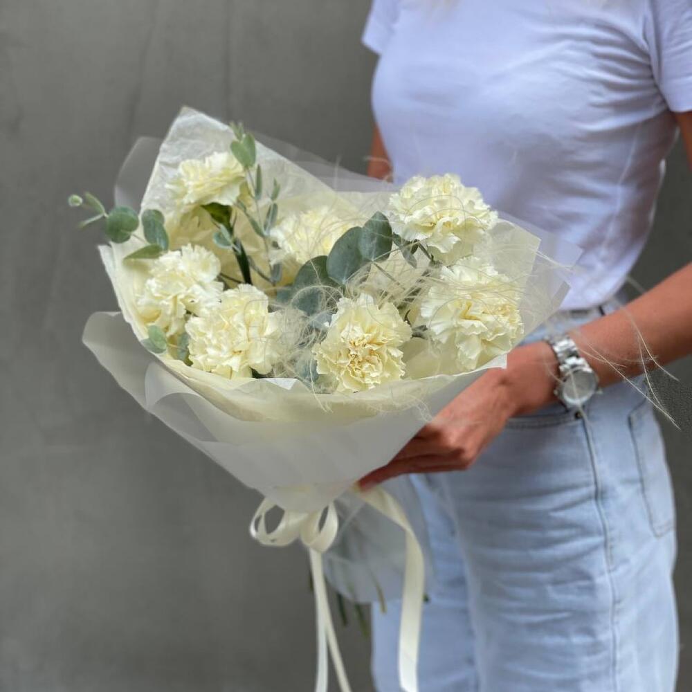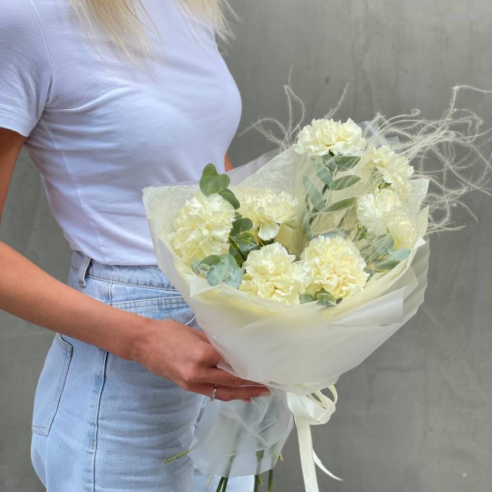 Диантус – 7 шт. Эвкалипт пучок – 1 шт. стипа – 2 шт. Упаковка дизайнерская – 1 шт.