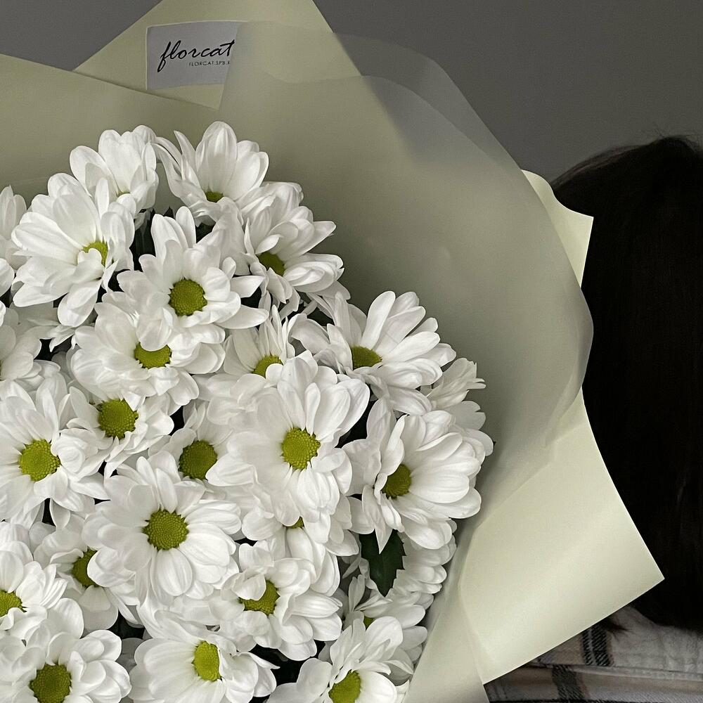 Букет из 11 белых кустовых хризантем Сантини с зеленью