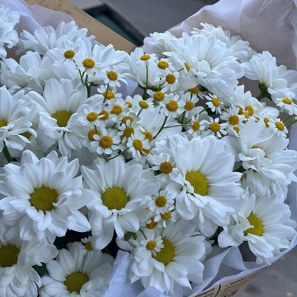 Букет из кустовых хризантем и ромашек