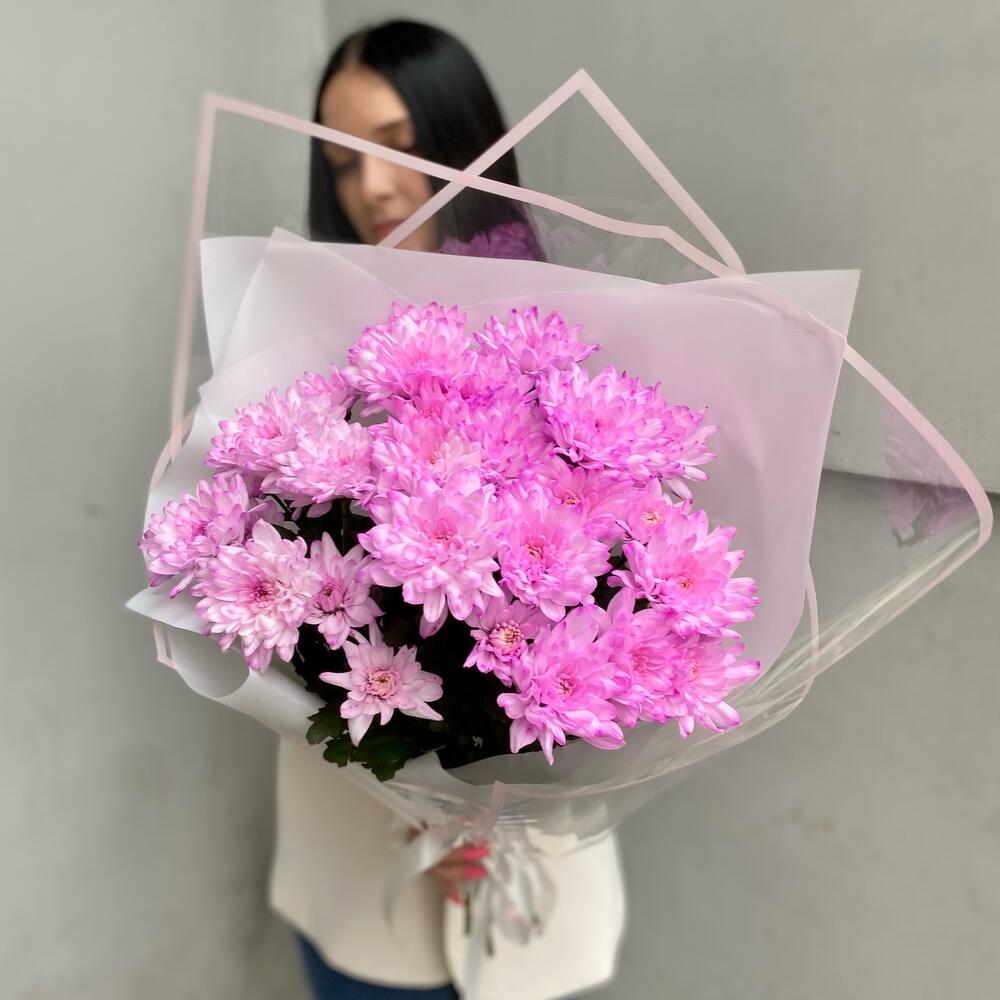 Хризантема кустовая – 5 шт.Лента атласная – 2 шт.Упаковка дизайнерская – 4 шт.