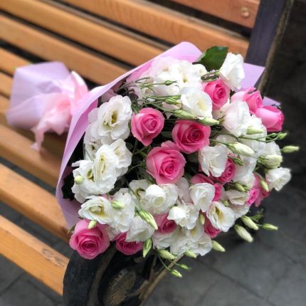 Букет из ароматной маттиолы и лизиантуса «Лето»