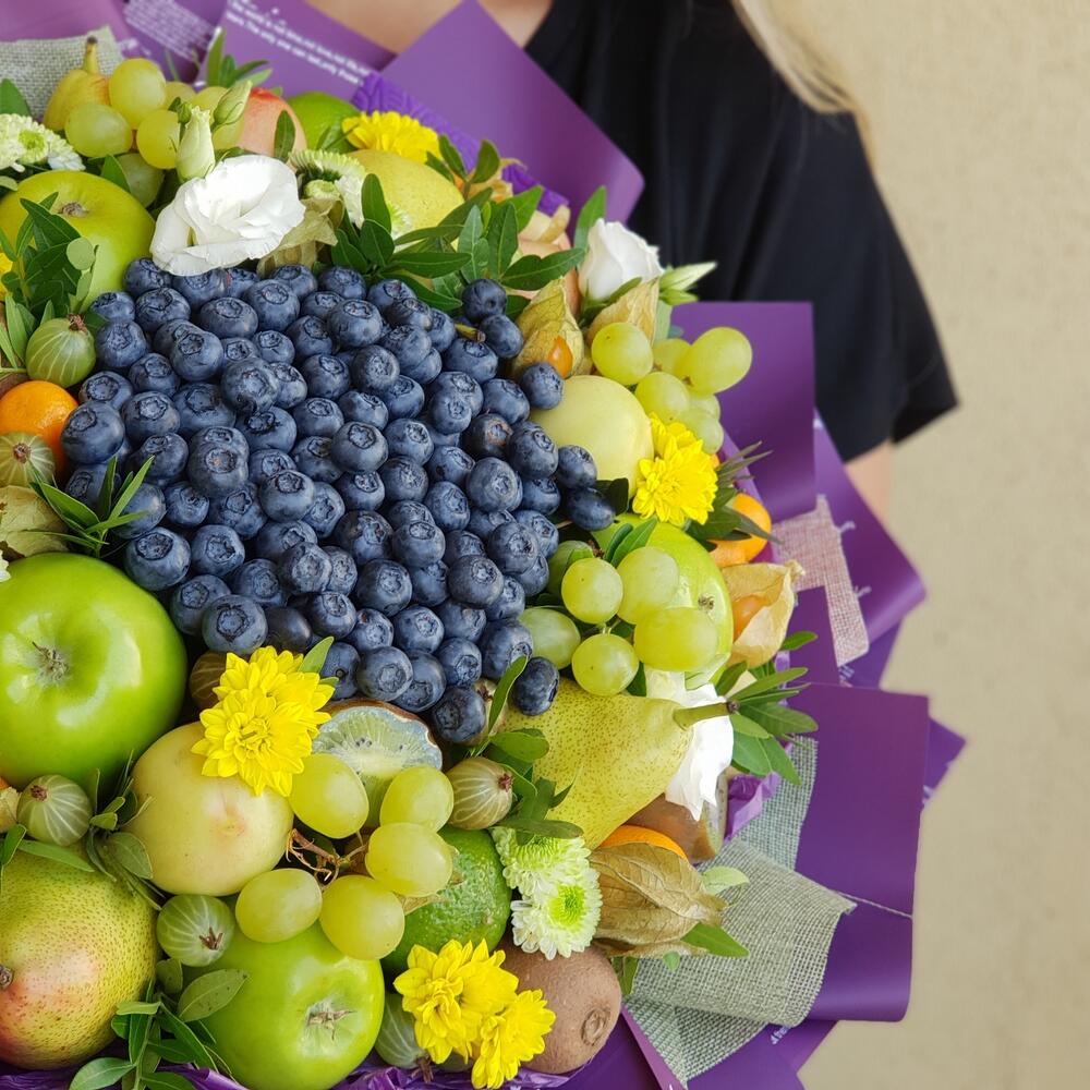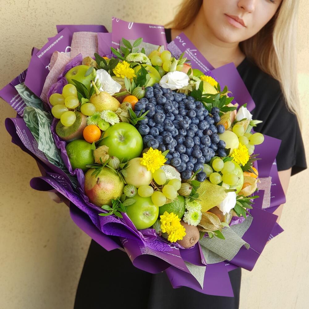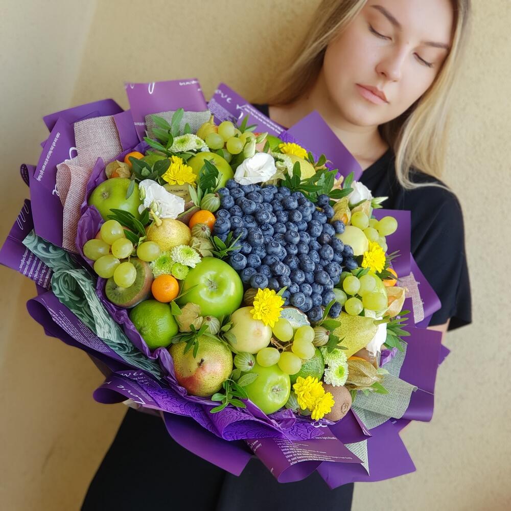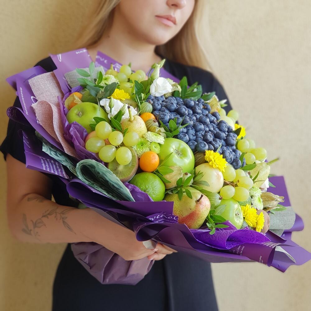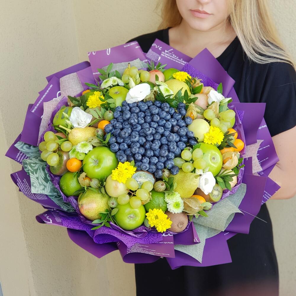 Оригинальный и по истине необычный премиальный букет выполняется с использованием ягод голубики , фруктов в зеленых оттенках и живых цветов.Дарится на юбилеи и значимые даты. Вызывает восторг как у женщин , так и мужчин. Очень детальная модель. WOW эффект гарантирован.Букет … Показать ещёупаковывается в аленку слюду и доставляется в транспортировочной коробке , которая может заменить вазу.