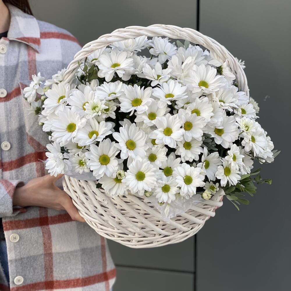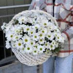 Корзина из белой ромашковой хризантемы