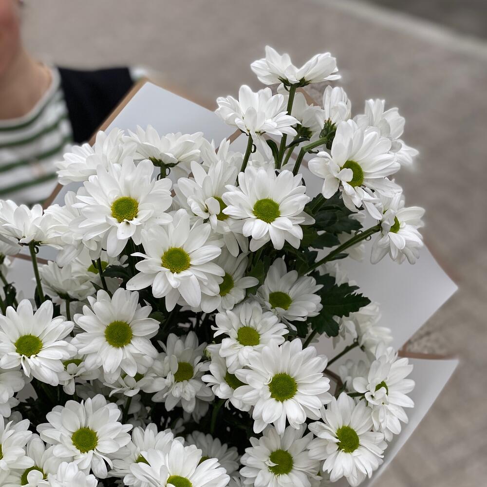Монобукет белой кустовой хризантемы ромашка 9 шт