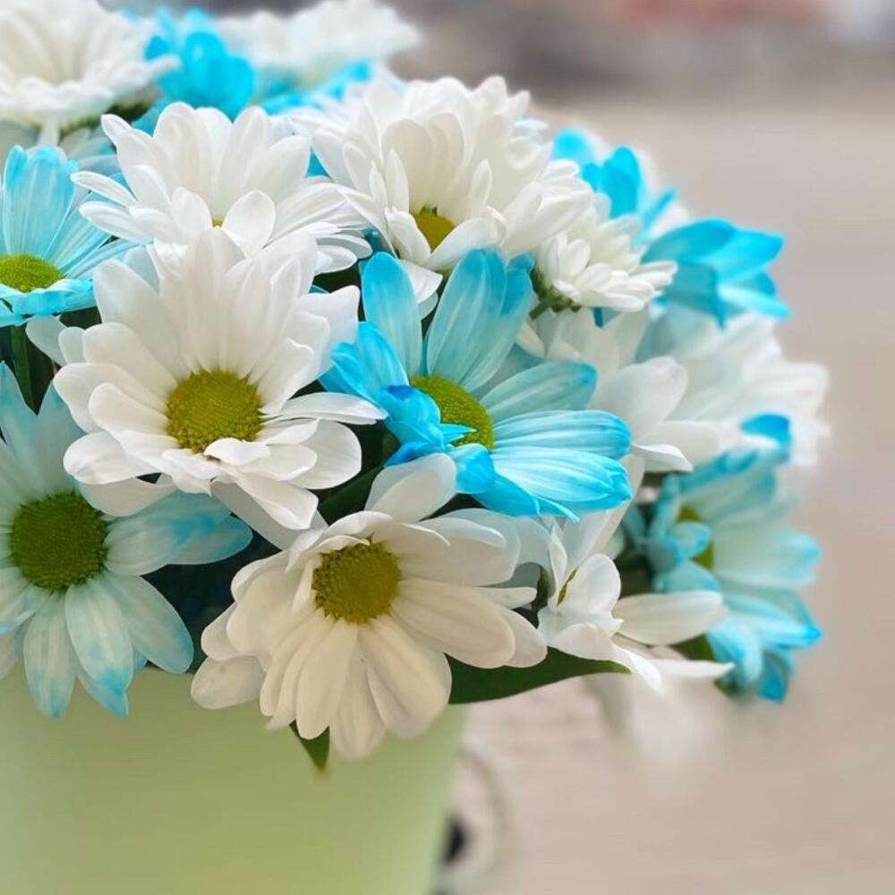 Нежные как зефирки голубо-белые хризантемы-ромашки подарят яркие эмоции Вашим родным