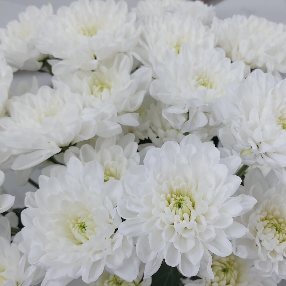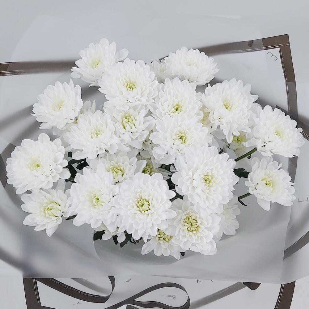 Монобукет махровых белых кустовых хризантем. Для тех, кто любит минимализм, кто ценит стиль и лаконичность Такой букет всегда уместен и подойдёт для любого повода: День Рождения, именины, годовщина свадьбы, рождение ребенка, 8 марта, День Святого Валентина, выпускной … Показать ещёи т.д. Можно вручить маме, сестре, подруге, коллеге, учителю, любимой.