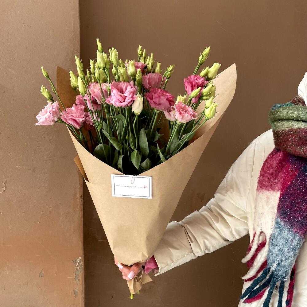 Крафт упаковка – 1 шт.Розовый лизиантус – 5 шт.