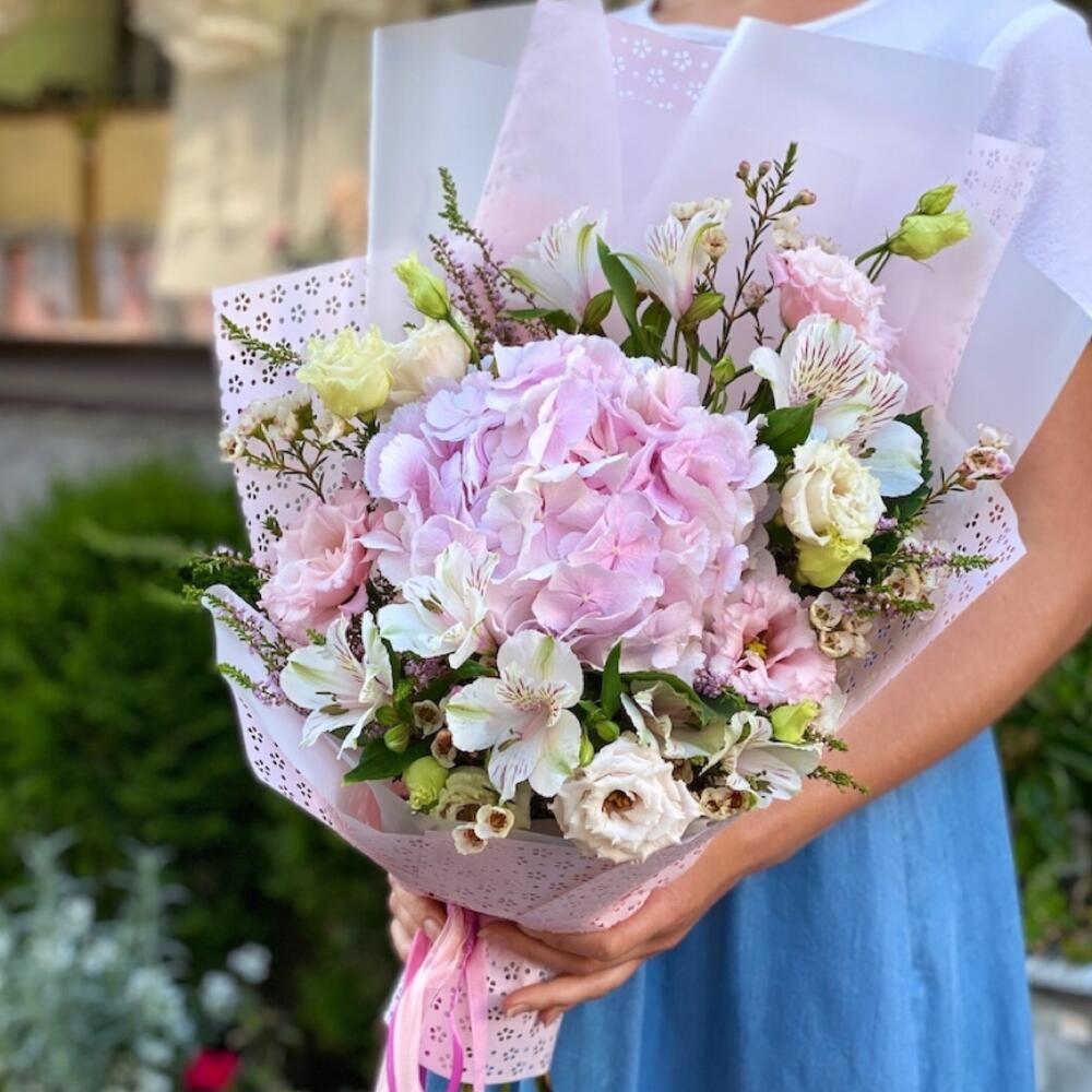 Этюд в розовых тонах с пионами и гортензиями