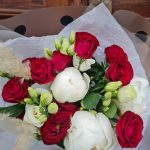 Торжественный букет с пионами и маттиолой