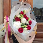 Букет из кустовой пионовидной розы и эвкалипт