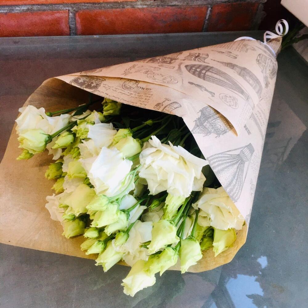 Крафт упаковка – 1 шт.Лизиантус Алиса белый – 5 шт.