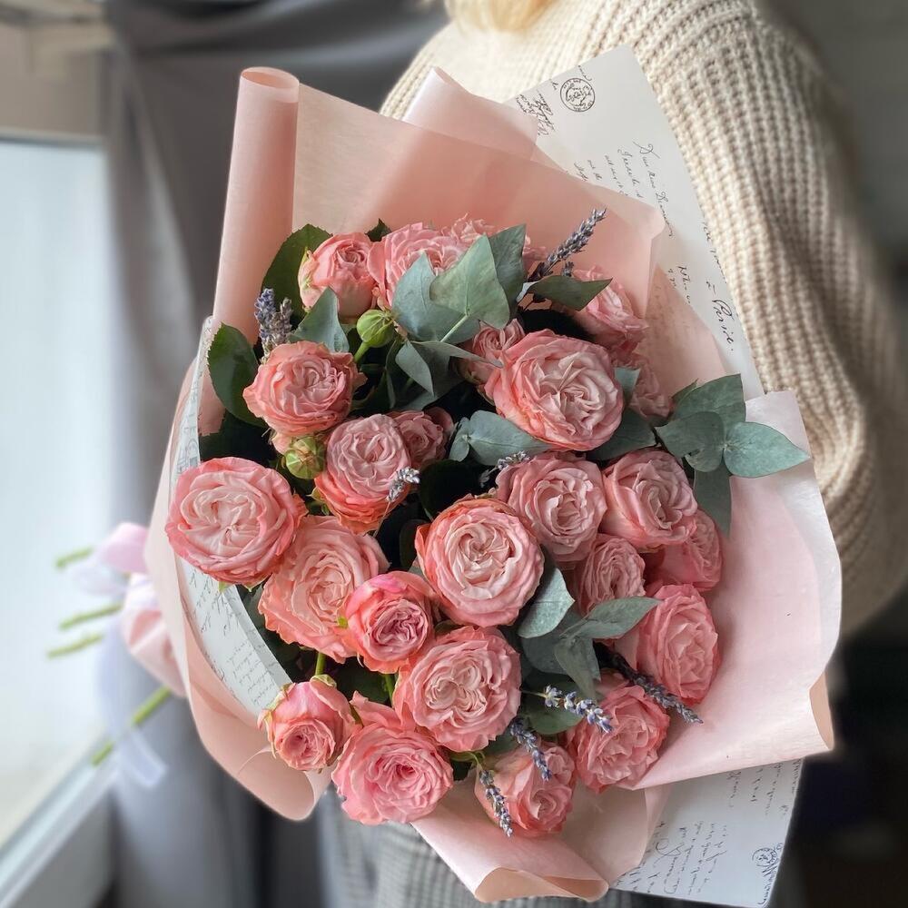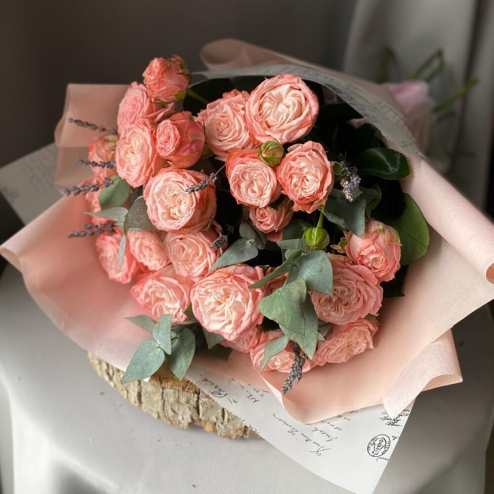 15 пионовидных кустовых роз Роял трендсеттер. Букет 310 Kimbirly Flowers