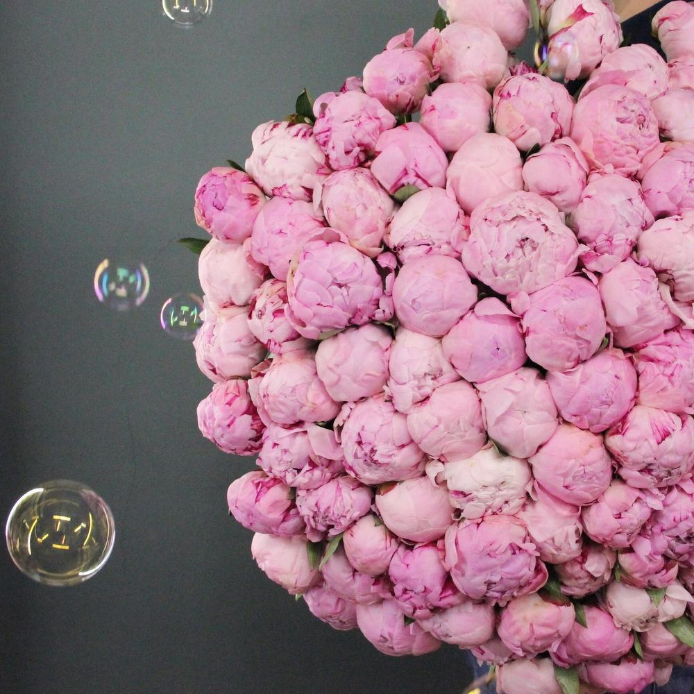 101 пион в многослойной упаковке