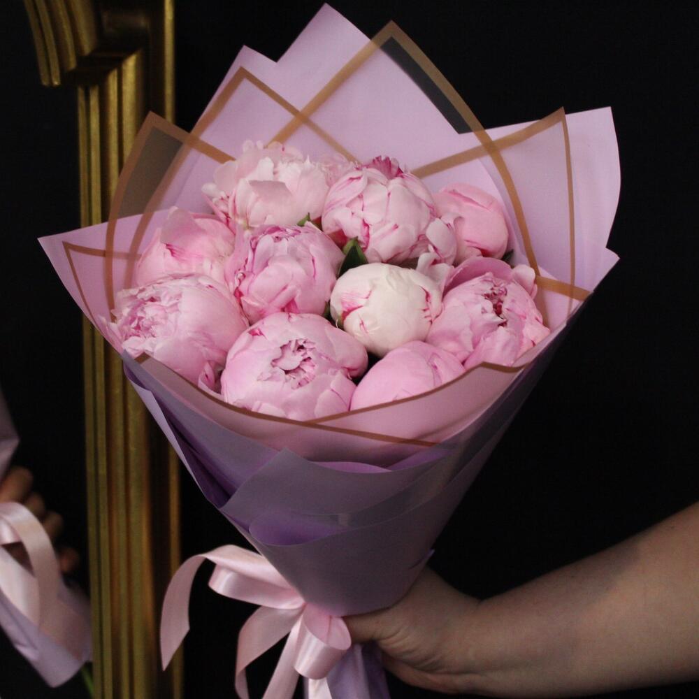 Лента атласная – 2 шт.Пион Сара Бернар – 11 шт.Пленка матовая – 3 шт.