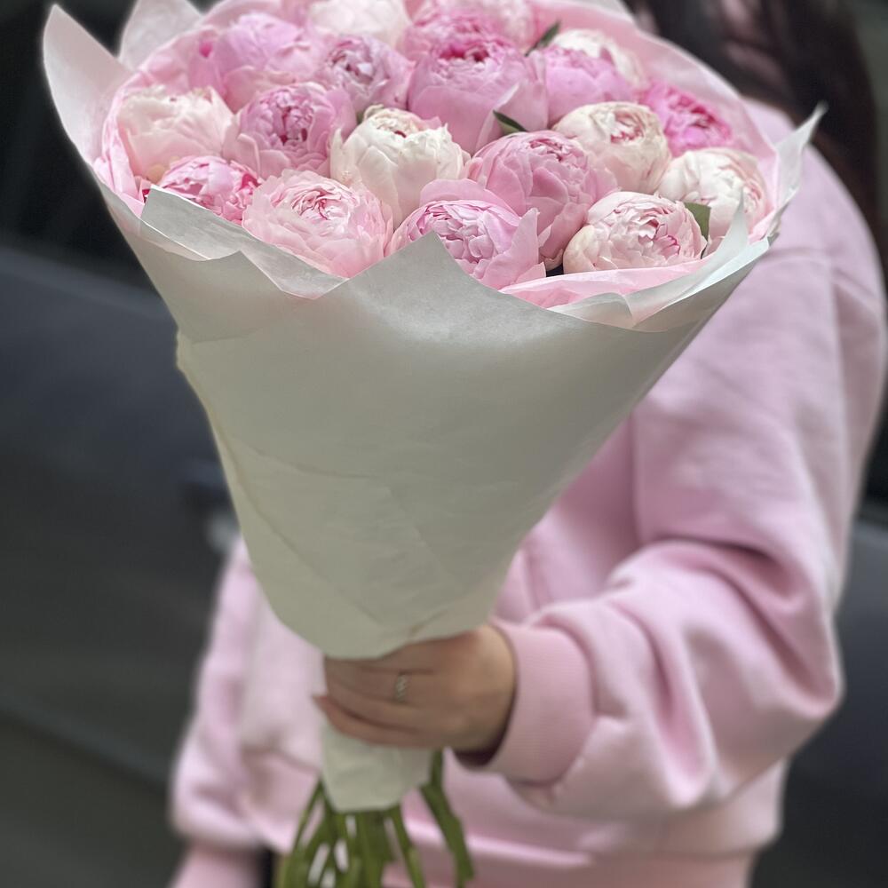 19 нежно розовых пионов