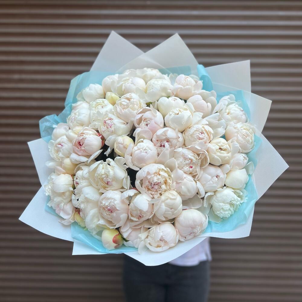 51 пион белый Вип букет (моно 079)