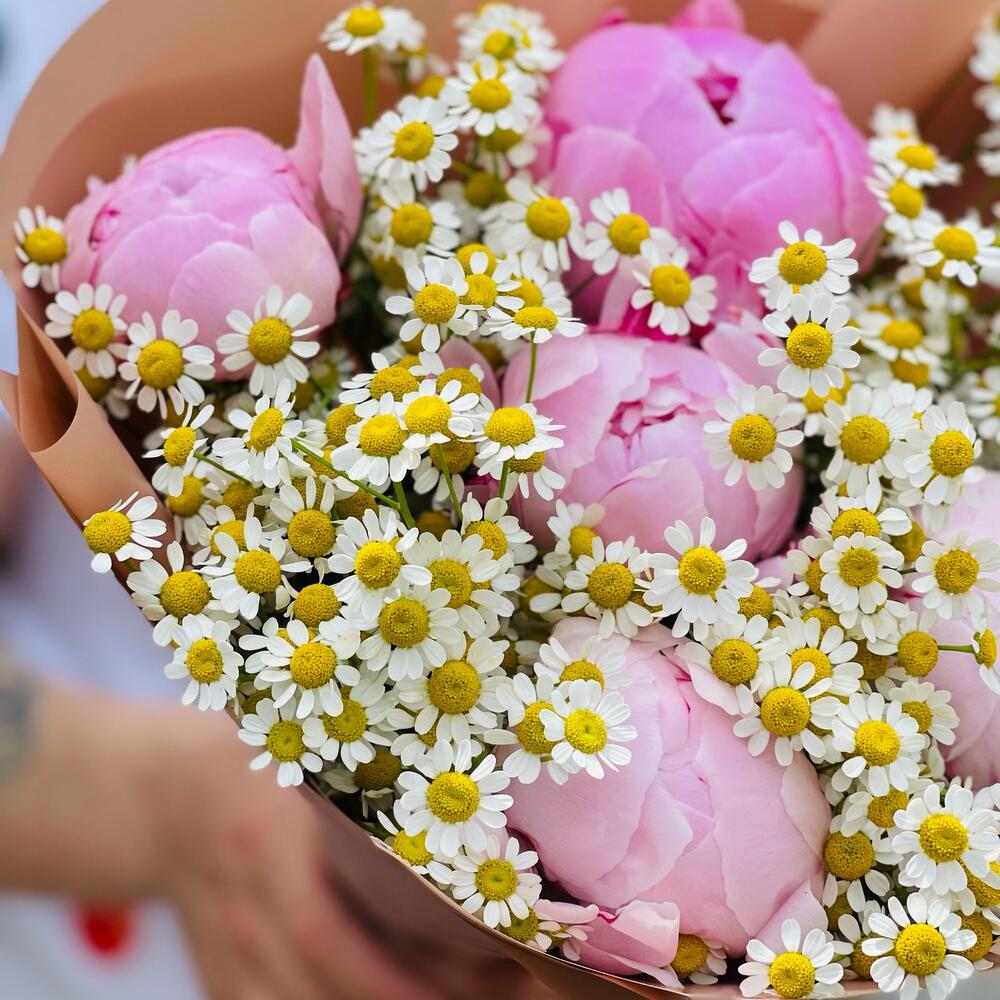 Ароматный букет пионов и ромашек