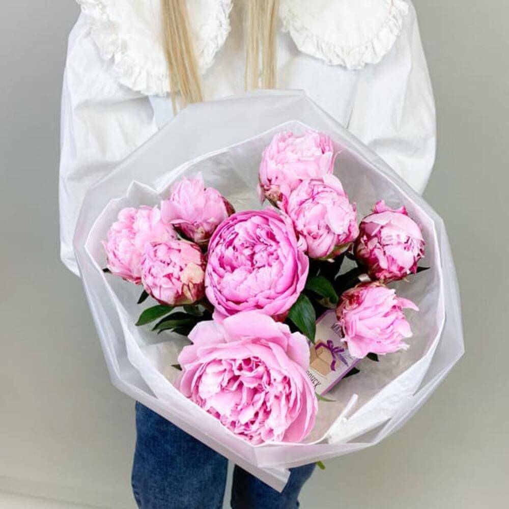 Букет с розовыми пионами Premium 9 шт